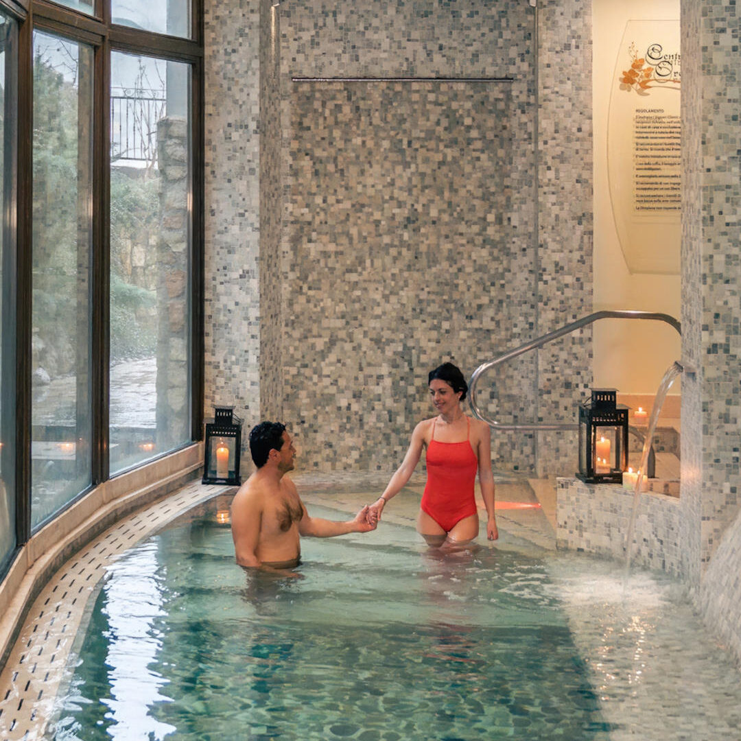 All’interno della Spa ti aspetta un vasto itinerario di benessere con Piscine Relax a 34° un vero salotto acquatico con idromassaggi e cromoterapia subacquea, e Piscina Fiume a 30° che riproduce la corrente di un torrente di montagna con tanto di cascate per il massaggio cervicale.